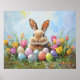 Niedlich Osterhase mit farbigen Eiern Poster