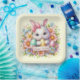 Niedlich Moderne Osterfeiertagspapier-Teller mit einem niedlichen Osterhasen umgeben von Ostereiern.