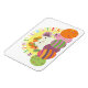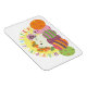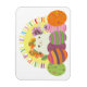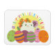 Adorable Illustration, einzigartiger Happy Oaster Magnet mit niedlicher weißer Katze und farbenfrohen Eiern und Blume.
