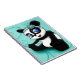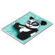 Ein niedlicher Panda mit türkisfarbener Blume. Die Einrichtung ist mit einem Blumenmuster auf türkisfarbenem Hintergrund gestaltet.