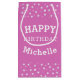 Niedlich Pink Geburtstag Star Muster Girly Geschenktasche. Herzlichen Glückwunsch zum Geburtstag, Geschenktasche für Mädchen. Das Design hat weiße Sterne auf einem rosa Hintergrund. Herzlichen Glückwunsch Geburtstagsgeschenke, die sich besonders für den Geburtstag eines Mädchens eignet. Personalisieren Sie es mit Ihrem Namen.
