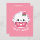 Super niedlich rosa Kuchen mit Smiley und fröhlicher Erdbeerfreund. Fügen Sie Ihre Party-Daten auf die Rückseite.