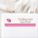 Eine niedliche rosa Ladybug-Illustration auf einem weißen Adressetikett mit rosa polka dot trim. Wählen Sie die Schaltfläche Anpassen, um den Stil, die Farbe und die Größe des Schriftartes zu ändern.