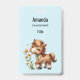 Namensschild mit einer adorable Abbildung. Ein kleines braunes Pony, das gerne Gänseblümchen isst.