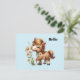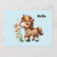 Eine Postkarte mit einer hübschen Abbildung. Ein kleines braunes Pony, das gerne Gänseblümchen isst.