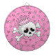 Niedlicher Schädel und Kreuzknochen, umgeben von Sternen in rosa Farbtönen.