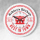 Personalisieren Sie diese rund um die Küche themed Wand Uhr mit Ihrem Namen und anderen Text. Editieren Sie einfach im einfachen Zazzle Editor. Erstellt mit einem einfachen roten und weißen Polka Dot Koch Topf mit schwarz-weißen Akzenten auf Weiß, in einem stilisierten Retro-Logo-Vibe. Ihre Auswahl an zahlreichen runden Stilen.
