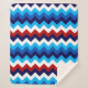 Eine mittelgroße Sherpa-Decke mit farbenfrohen, niedlichen Mustern aus roten, weißen und blauen Chevronen.