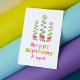Diese niedlichen handgezeichnet Blume paaren sich mit Retro-Typografie für einen schicken Geburtstagsgruß! Die hellen Pastellfarben erinnern an die 60er und 70er Jahre. Die Karte ist personalisiert - der Name des Geburtstagsmädchens geht ganz unten in einem trendigen Magenta-Skript, das sich mit den Blüten abstimmt. Das Innere lautet: "Genießen Sie Ihren schönen Tag." Passen Sie die Insider-Nachricht an, wie Sie möchten.