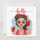 Niedliche Retro Girl Hallo-Karte mit leerem Rücken für persönliche Nachricht.