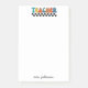 Diese niedliche Retro farbenfrohe Lehrernote ist perfekt für die Geschenke der Lehrer. Der Skriptkalligraphiename fügt eine persönliche Touch hinzu.