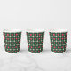 Diese niedlichen Papiertassen zeichnen sich durch ein Retro-Pop-Blume-Muster in Weihnachtsgrün und Rosa aus.