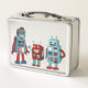 Niedlich Retro Robots Personalisierte Sci-Fi Metall Brotdose
