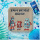 Fügen Sie jedem Party mit diesen benutzerdefinierten Tellern eine Vintage Sci-Fi-Touch hinzu. Mit niedlichen Retro-Robotern in Rot- und Blau-Farbtönen vor bräunlichem Hintergrund sind diese Roboter bereit, mit Ihren individuellen Botschaften personalisiert zu sein und sie somit perfekt für Geburtstagspartys für Jungen und Roboter aller Altersgruppen geeignet.