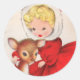 Niedliches Vintages Retro Weihnachtsmädchen mit Hirschklassiker Rundsticker.