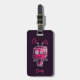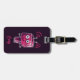 Niedlicher Roboter personalisierten Mädchen Gepäckanhänger mit einem skizzenhaften digitalen Doodle eines lustigen kleinen Roboters mit einem Papiertütenkopf in Rosa und lila Farben.