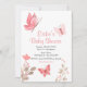 Eine hübsche, mädchenhafte Dusche mit rosa Schmetterlingen und einigen rosa Blume. Die Rückseite der Karte weist ein zartes Muster mit denselben Schmetterlingen und Blume auf. Teil der Sammlung von Stationierwaren und Party aus rosa Schmetterlingen