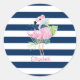 Niedlich rosa FlamingosTropisches Leaf,Streifen Runder Aufkleber