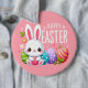 Niedlich, rosa glücklich Osterhase Button