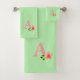 Niedlich-rosa Monogramm mit Blume auf Kalkgrün Badhandtuch Set