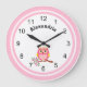 Diese farbenfrohe niedliche Kinderzimmer-Wanduhr steht für Ihren Namen bereit (optional). Erschaffen mit einer süßen rosa Eule, die auf einem grünen Zweig mit rosa Grenzzauber sitzt. So niedlich für Baby- oder Kleinkindzimmer. Ihre Wahl der mittleren oder großen runden Größe.