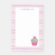Ein Niedlicher rosa und lila Kuchen mit funkelnd Sequin-Zuckerguss und eine rote Kirsche auf der Oberseite schmücken diese Post es notiert. Der Hintergrund hat ein rosa und lila gestreiftes Muster. Ideal für ein Teenager-Mädchen! Personalisiert für das neue Schuljahr oder als Geschenk. Entworfen für Sie von BlackBerry Boulevard.