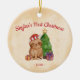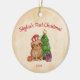 Ein bezauberndes Ornament zeigt einen von Hand gezeichnet Weihnachtsfaultier, der eine Weihnachtsmannmütze trägt und neben einem festlichen Weihnachtsbaum sitzt, der zu Geschenken warte. Ideal für personalisierte Ornamente! Der Rücken hat auch eine Möglichkeit, zu stellen, von wem das Ornament stammt. Illustration von Lavender Mint Graphics — komplett von Hand gezeichnet, ohne AI-generierte Inhalte.