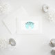 Ein einfaches Design mit einem Schneemann in einem Aqua-Schneeglobe, mit schneebedeckten Hügeln und Schneeflocken.