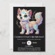 Feiern Sie Ihren großen Tag mit dieser bezaubernden Einladung! Ein bezaubernder, weißer Wolf im Stil eines Cartoon mit glitzernden aquamarin-blauen Augen und Blume-Mustern glänzt vor einem schwarzen Hintergrund. Ideal für einen knechten Winter, einen schneebedeckten Wald oder ein zauberhaftes Party zum Thema Tiere.