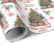 Das wiederholte Muster auf diesem Weihnachtsverpackungspapier enthält ein Bild eines bezaubernden kleinen Tigercubs mit einer rot-weißen Weihnachtsmannmütze. Er sitzt vor einem verzierten Holiday Baum mit Geschenkpaketen darunter. Roter und grüner Text sagt MERRY CHRISTMAS", mit dem Namen Ihres Kindes und Ihrer Unterschrift unten. Weitere Bilder im Muster sind rote dekorative Schneeflocken und Bonbons, die mit einem Bogen verbunden sind.