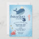 Diese charmante Geburtstagsfeier lädt mit einem illustrierten Untermeer-Thema und farbenfrohen Meereslebewesen zum Verweilen ein. Ein Bild eines jungen Wals mit einer goldenen Prinzenkrone schwimmt oben. Eine alberne kleine Krabbe krabbelt am Boden, und ein niedliches kleines Seepferd schwimmt in der Nähe des Zentrums auf den links. Der Hintergrund ist mit einem Wassermuster versehen, das Tiere und Fische unter dem Meer erscheinen lässt.
