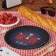 Ein als Dracula gekleideter niedlicher Cartoon-Vampir breitet seinen rot gesäumten Mantel in diesem Originalwerk von Richard H. Fay aus.