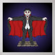 Ein als Dracula gekleideter niedlicher Cartoon-Vampir breitet seinen rot gesäumten Mantel in diesem Originalwerk von Richard H. Fay aus.