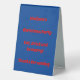 Dieses phantastische Weihnachtszelt-Schild zeichnet sich durch ein digitales Kunstbild eines niedlichen sandfarbenen, braunen Dromedary Camels mit schönen langen Wimpern und einem Single-Höcker auf seinem Rücken aus. Das Kamel ist zum Weihnachtsfeiern mit einer rot-weißen Weihnachtsmannmütze auf dem Kopf gekleidet. Das Kamel ist in der Bibel zu sehen und ein traditionelles Symbol für Weihnachten. Auf der Vorder- und Rückseite ist ein eigener Text vorhanden, damit Sie diese vollständig personalisieren können.
