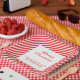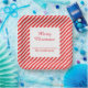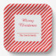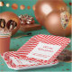 Niedliche Teller aus weißem und rot gestreiftem Papier. Es ist sehr einfach, Ihre persönlichen Daten mit Details zu versehen.
