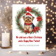 Die niedliche Yorkie trägt den Hut des Weihnachtsmannes und holt sich aus einem Weihnachtskranz einen Höhepunkt. Fügen Sie Ihr Foto auf der Rückseite ein. Alle Texte können bearbeitet werden. Sie können den gestreiften Rahmen von der Rückseite entfernen.