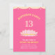 Niedliche 13. Geburtstagsfeier Einladungskarte mit einer rosa Lotus-Blume auf magentafarbenem Hintergrund auf der Vorderseite und einem rosa Sternmuster auf der Rückseite. Text und Zahlen können für jedes Alter personalisiert sein.