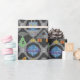 Dieses Niedliche Alien Packpapier hat ein niedliches nordisches Alien Pullover-Muster, basierend auf dem Thema der klassischen Fair Isle Strickdesigns. Das Muster besteht aus grauen und schwarzen Kreisen und Diamantstreifen. Jede Form hat unterschiedliche niedliche Retro-Alien-Motive. Sie haben einen niedlichen Retroroboter, UFO-Entführung, ein Raumschiff mit grüner Alien, einen grauen Alien-Kopf, ein Sonnensystem, eine Alien-Pflanze, eine Retropistole und einen Star-Kämpfer. Zwischen dem Muster sind Monde und Sterne.