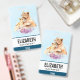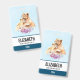 Personalisiertes Abzeichen mit einem niedlichen Aquarellbild von einer Mutter Löwe, die ihren Babykrug hält. Ein hübscher, lila Blumenstrauß unter ihnen fügt diesem süßen und zauberhaften Bild eine sanfte Touch hinzu. Hellblauer Hintergrund.