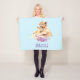 Eine Decke mit einer niedlichen Aquarellmalerei von einem Mutterleib, der ihren Babykrug hält. Ein hübscher, lila Blumenstrauß unter ihnen fügt diesem süßen und zauberhaften Bild eine sanfte Touch hinzu. Hellblauer Hintergrund.