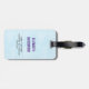 Personalisierter Gepäckanhänger mit einem niedlichen Aquarellbild eines Mütterlions, der ihren Babykrug hält. Ein hübscher, lila Blumenstrauß unter ihnen fügt diesem süßen und zauberhaften Bild eine sanfte Touch hinzu. Hellblauer Hintergrund.