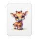 Ein niedliches Baby-Giraffe im Cartoon-Stil mit großen, ausdrucksvollen Augen und einem fröhlichen Lächeln. Es steht in einer spielerischen Pose, die allgemeine Stimmung ist fröhlich und skurril, perfekt für ein Kindergeschenk.