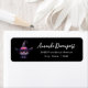 Adressetiketten mit einer lustigen Halloween-Illustration für Katzenliebhaber. Eine mit Augen schwarze Katze mit einem großen schwarzen Hexenhut mit einem purpurpurfarbigen rosa Gürtel um den Rand.