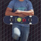 Niedliche Blitzfehler-Firefrefly-Cartoon-Abbildung Skateboard
