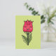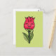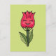 Niedliche Blume Mädchen Postkarte mit einer Vektorgrafik, die einen Blumencharakter wie eine Tulpe darstellt, sowie eine Rose, die glücklich lächelt. Diese lustige Frühlingsillustrierung hat leuchtende rote und grüne Farben.