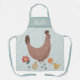 Diese niedliche und moderne Schürze mit einem bunten Hühnerdesign mit Küken, Blume und Eiern bietet Platz für Ihren Namen. Die perfekte Einrichtung für alle Farmliebhaber.