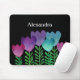 Personalisieren Sie dieses niedliche und gürtelige Mauspad. Rosa, blaue und lila Blumen und grüne Blätter auf schwarzem Hintergrund. Sie können den Stil des Schriftartes ändern, indem Sie auf die Schaltfläche Anpassen klicken.
