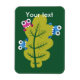 Niedlicher Magnet mit einer Cartoon-Abbildung von drei Bugs mit riesigen Augen, die auf einem frischen grünen Blatt und anpassbaren Text nibbeln. Ein Bug ist rosa, die anderen beiden blau. Und wenn die Käfer die Pflanze essen, wissen Sie, dass es Bio ist, hh. Dieses Design hat ein allgemeines Federgefühl. Es wird einen Naturliebhaber anziehen, der komische Cartoon-Figuren mag.