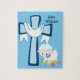 Niedliche Taufe für einen Jungen, der Gottes kleines Lamm ist. Ein zauberhaftes Schaf neben einem schönen blauen Kreuz mit weißem Blatt. Hübsches Weihnachtsgeschenk für eine religiöse Familie. Bestellen Sie noch heute Ihr Christliches Kind.