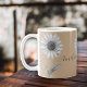 Niedliche monochromatische Daisy Blume in einer boho Erden Ton Hintergrund Kaffee Tasse. Personalisieren mit Namen oder Text. Passen Sie den Schriftart und die Farbe an Ihre Vorlieben an.